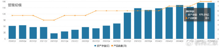 这种“将心比心”式的产品耕耘,有效转化为徐彦管理规模的持续增长。2020年Q3-2025年Q2间,徐彦所管理的产品数量并没有大量变化,但管理规模却在节节攀升,从最低2021年Q3的26.49亿,增长到2025年Q2的173.21亿,增幅高达553.87%,而这一表现与同期行业整体管理规模下滑形成鲜明对比,充分体现了投资者对其管理能力的认可。